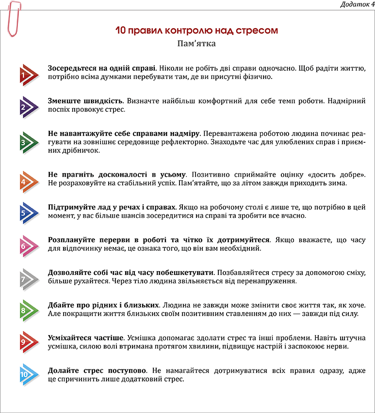 - пам’ятка «10 правил контролю над стресом».